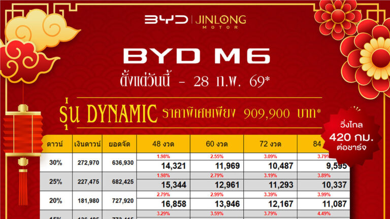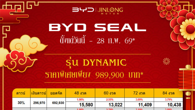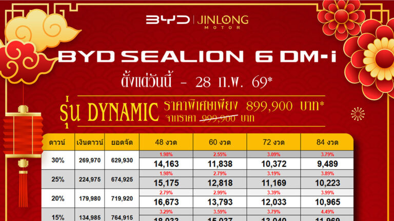ราคาและตารางผ่อน BYD SEALION 6 DM-i ตั้งแต่วันนี้ – 31 มค. 69