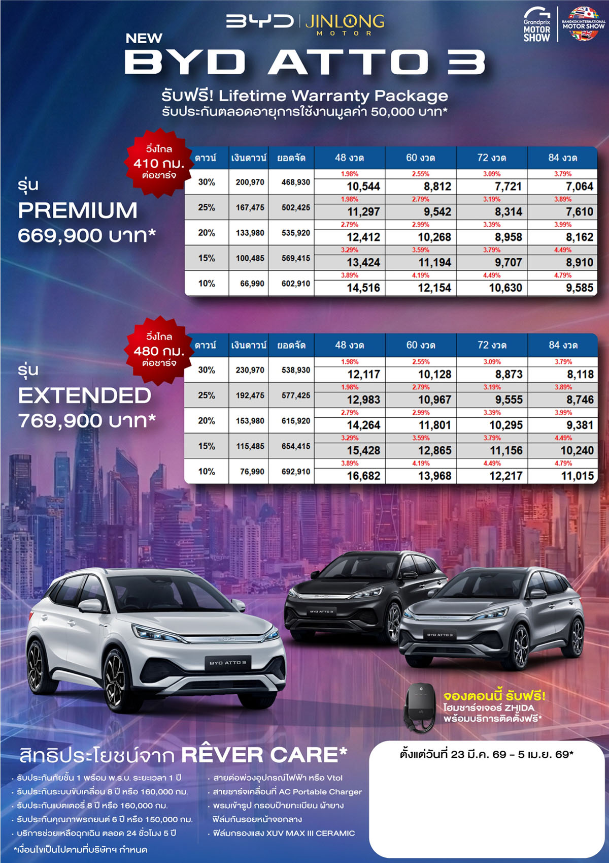 ราคาและตารางผ่อน BYD ATTO 225 มีนาคม 202626 มีนาคม 2026ราคาและตารางผ่อน BYD ATTO 2 ตั้งแต่วันที่ 23 มี.ค. 69 – 5 เม.ย. 69*อ่านต่อ