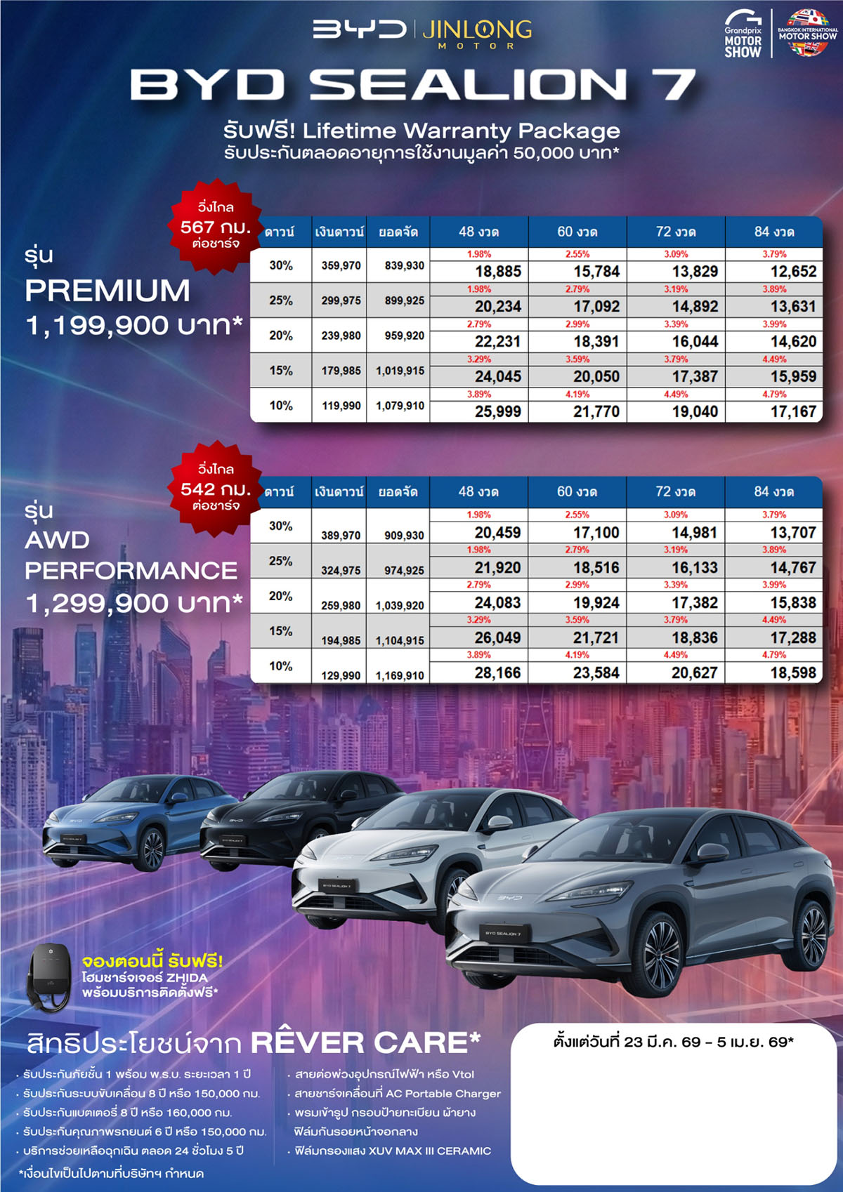 ราคาและตารางผ่อน BYD SEAL 625 มีนาคม 202626 มีนาคม 2026ราคาและตารางผ่อน BYD SEAL 6 ตั้งแต่วันที่ 23 มี.ค. 69 – 5 เม.ย. 69*อ่านต่อ