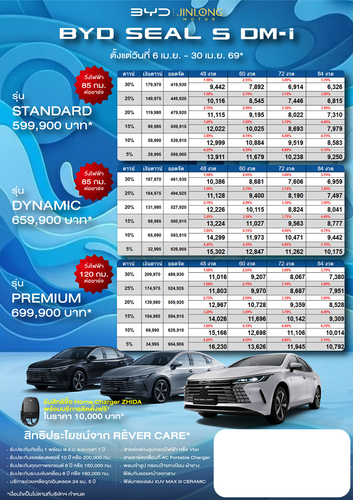 ราคาและตารางผ่อน BYD SEAL 5 DM-i ตั้งแต่วันที่ 6 เม.ย. 69 – 30 เม.ย. 69*