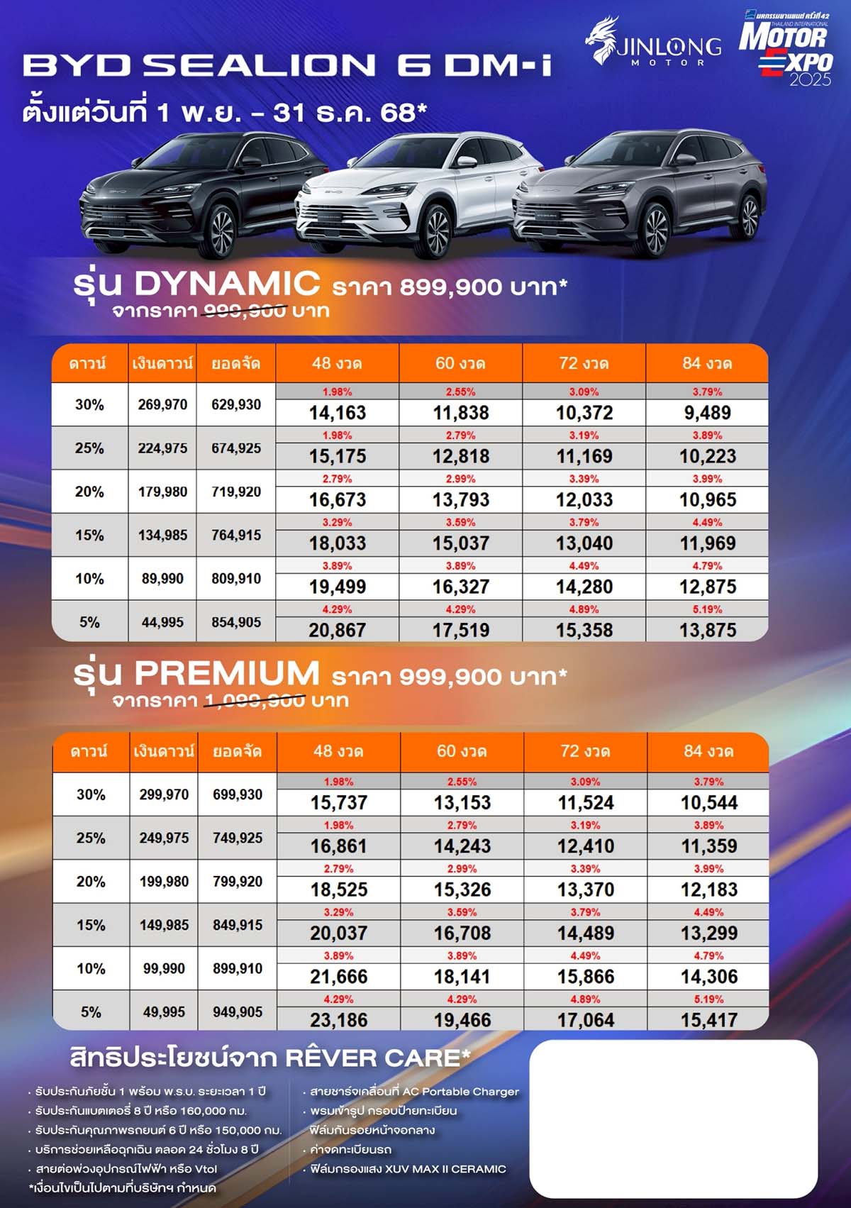 ราคาและตารางผ่อน BYD SEAL6 พฤศจิกายน 20256 พฤศจิกายน 2025ราคาและตารางผ่อน BYD SEAL ตั้งแต่วันที่ 1 พย. - 31 ธค. 68 บีวายดี จินหลง สาขาศรีนครินทร์อ่านต่อ