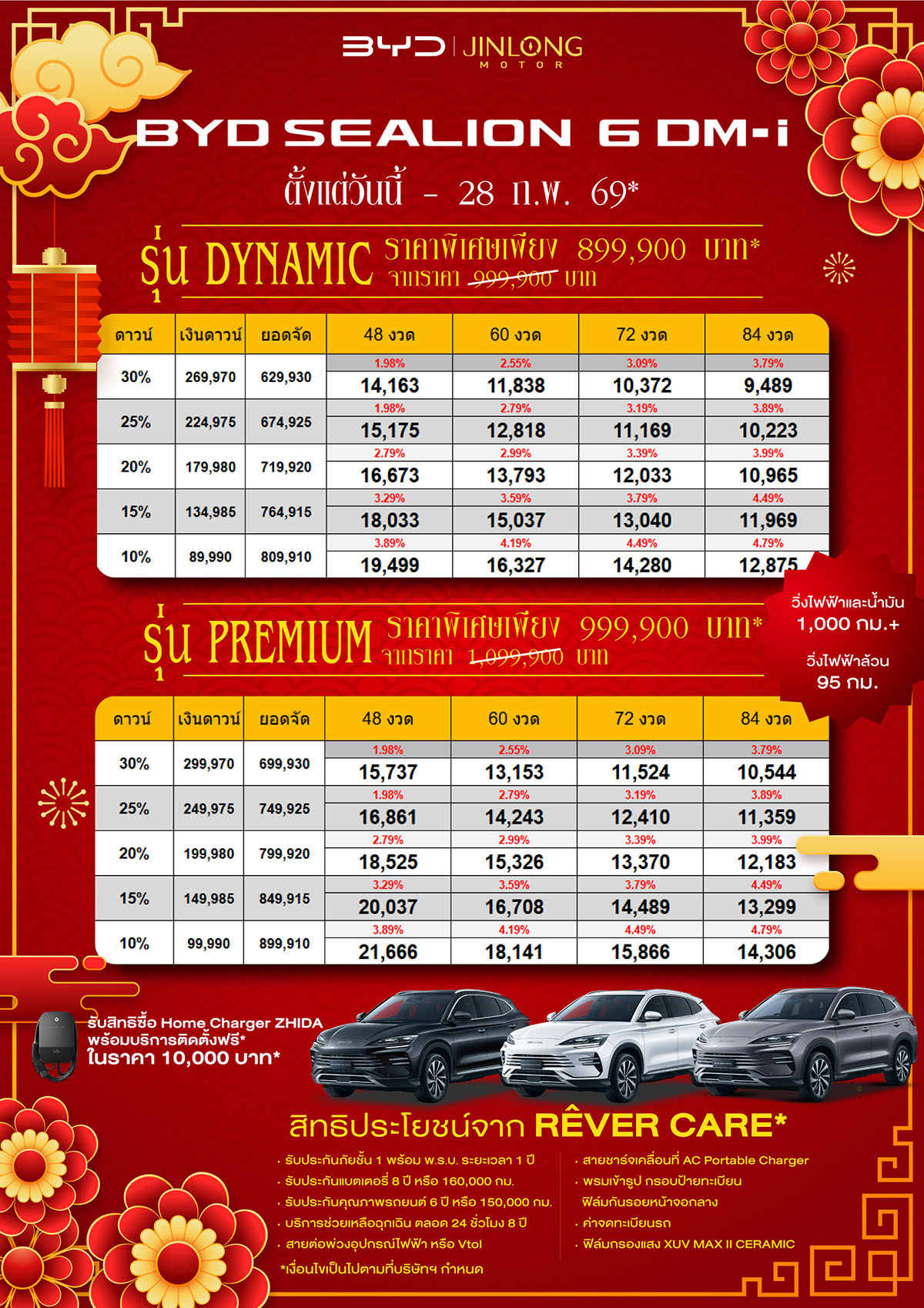 ราคาและตารางผ่อน BYD SEAL 5 DM-i รุ่น PREMIUM8 กุมภาพันธ์ 20268 กุมภาพันธ์ 2026ราคาและตารางผ่อน BYD SEAL 5 DM-i ตั้งแต่วันนี้ - 28 กพ. 69อ่านต่อ
